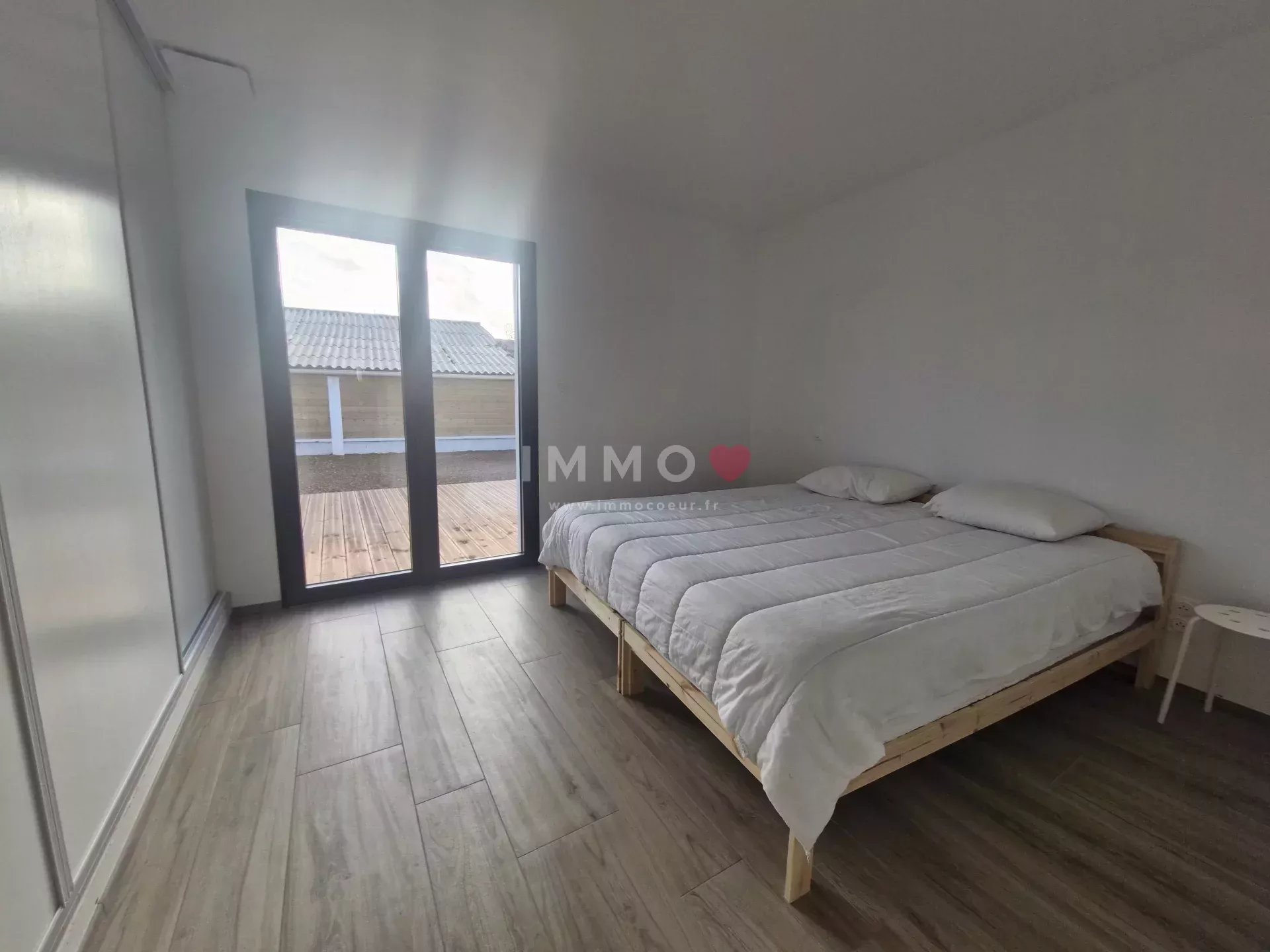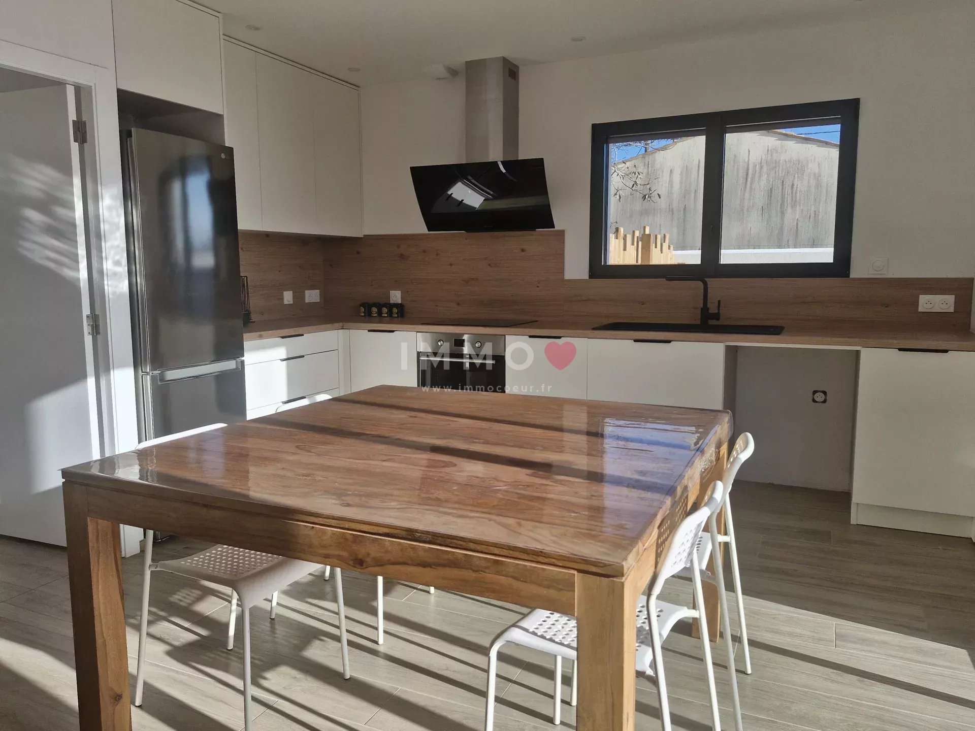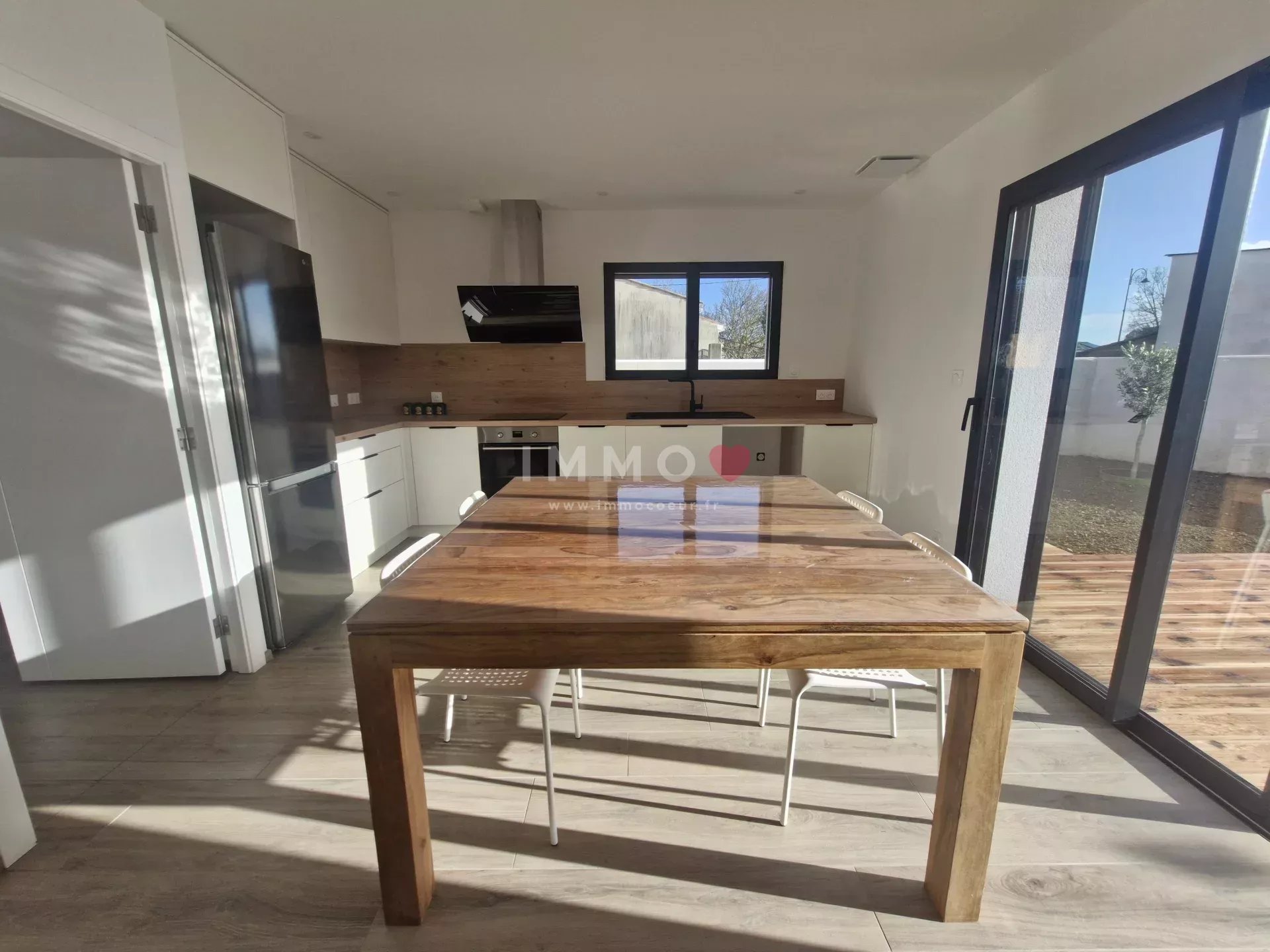 Entre LA ROCHELLE et NIORT, à FERRIERES, plain-pied neuf, meublé, offrant une belle pièce de vie exposée plein sud, cuisine ouverte aménagée et équipée, cellier, 3 chambres, salle d'eau, toilettes, garage, terrasse bois et jardin clos.