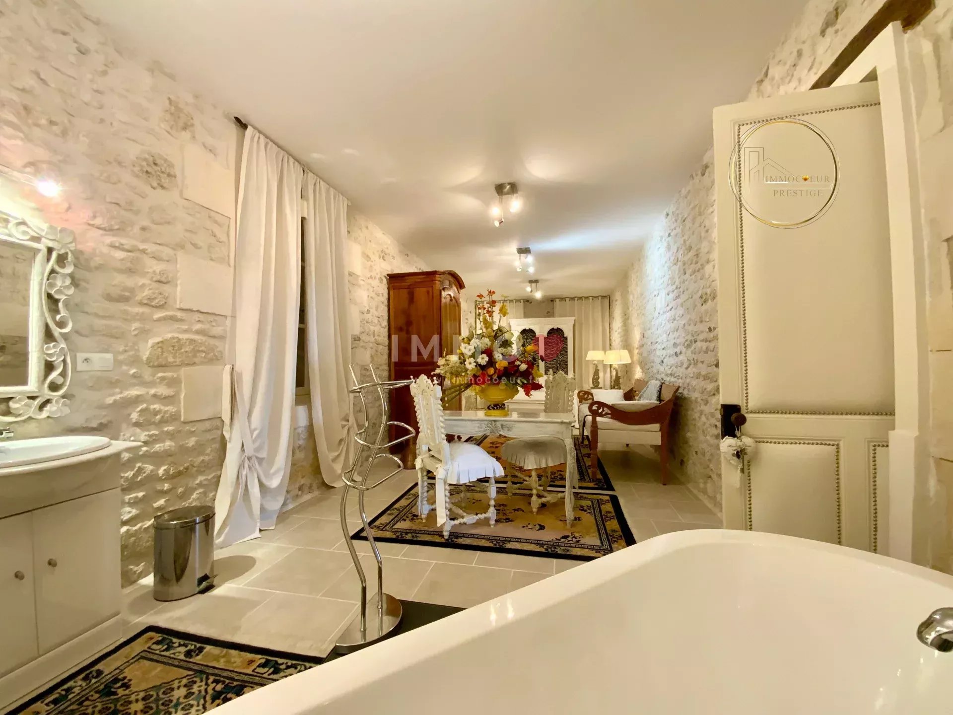 Nichée dans un environnement paisible à seulement 20 minutes de Royan et 25 minutes de Jonzac, cette superbe demeure de style Napoléon III allie le charme intemporel des belles pierres à une rénovation raffinée réalisée avec un goût irréprochable.