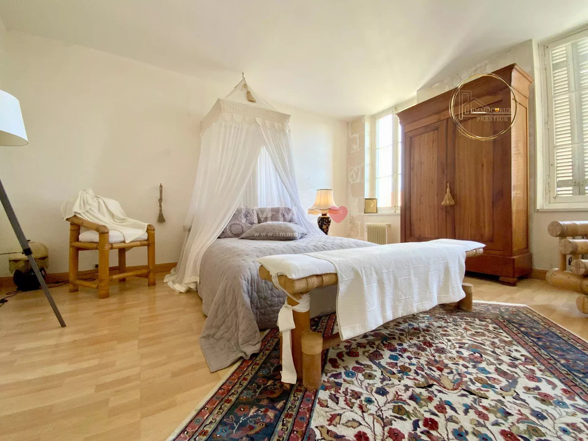 Le premier étage propose quatre chambres supplémentaires et une salle de bain, offrant la possibilité d’y loger confortablement une grande famille ou de développer une activité d’accueil complémentaire.